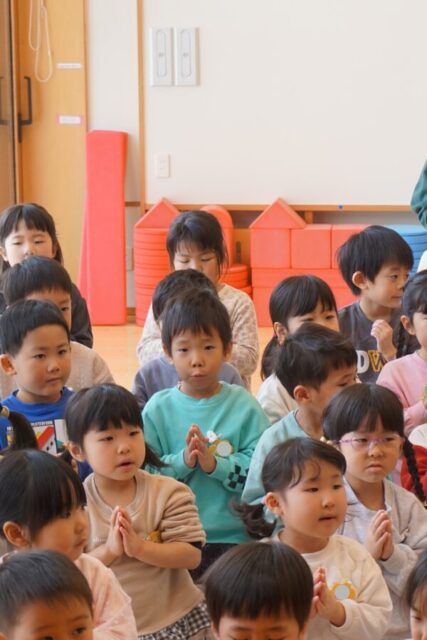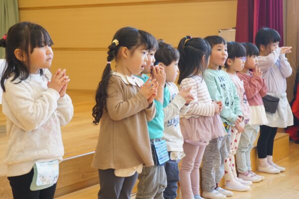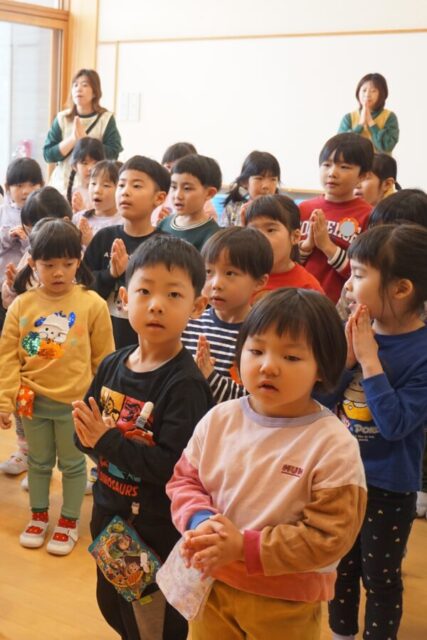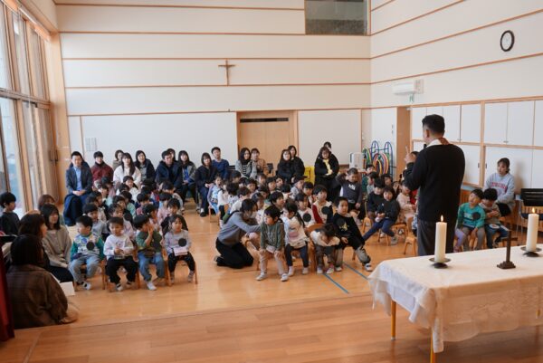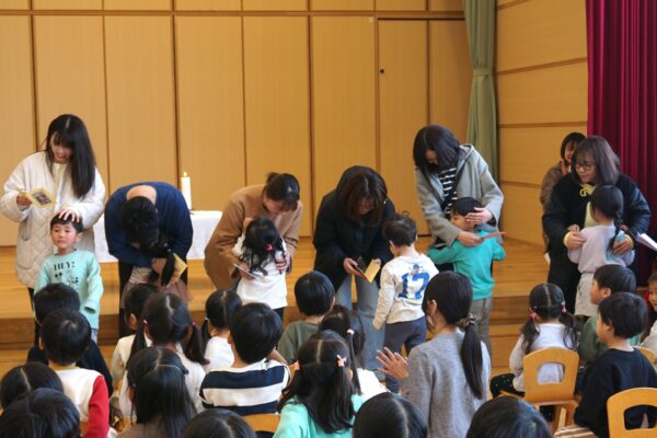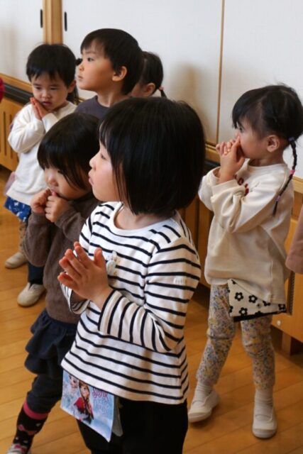 2月 豆まき 卒園感謝の祈り(年長) 誕生会(2,3月)