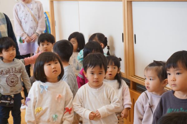 1月19日(月) 3学期始業式 久しぶりにたくさんの子どもたちが元気に登園して、こども園ににぎやかさがもどってきました。さあ、1年の総仕上げ、そして、4月の進級・入学に向けていい準備をする3学期のスタートです!