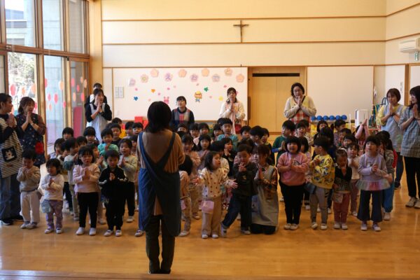 2026年度 年間行事(4月) 4/8更新 始業式 投稿者: oasa2026年4月8日ブログ *お知らせ* ブログでは、こども園の年間行事をお知らせしています。日常の子どもたちの姿は、レーザーキッズやインスタグラムで配信中です❗ ぜひご覧ください🤗 4月8日(水) 始業式 ホールにお友だちみんなで集まっての始業式! 一つお兄さんお姉さんになってやる気いっぱいの子どもたち。キラキラした目で先生のお話を聞きました。さあ、楽しい1年の… はじまり はじまりーっ❗
