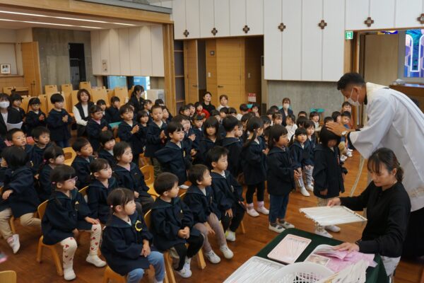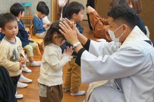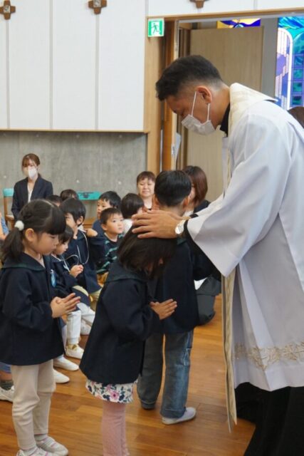10月 七五三のお祝い(10/9) 自分たちがこれまで元気に大きく育ってきたことをみんなでいっしょに喜び合い、神様や家族の愛に「ありがとう」の気持ちを持つことができました。