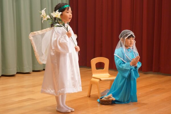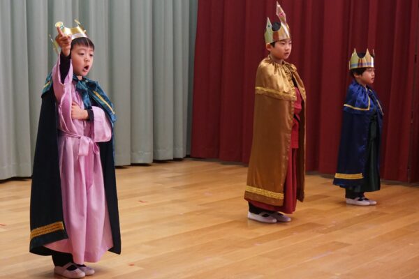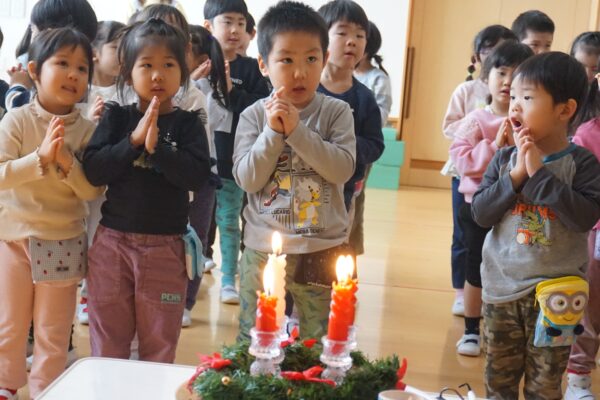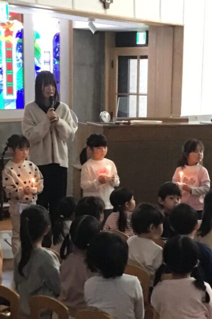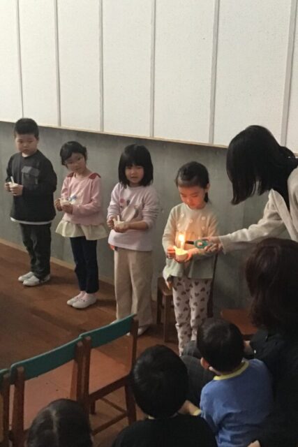 16日(火) クリスマスお祝い会 きれいな心で過ごしてきたことを神さまに報告し、あおさんがキャンドルサービスをしました。先生方のダンスの披露もあって、みんなで楽しくクリスマスのお祝いをしましたよ!