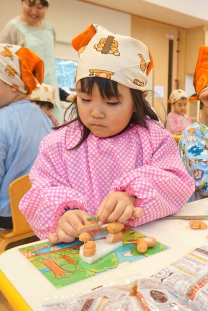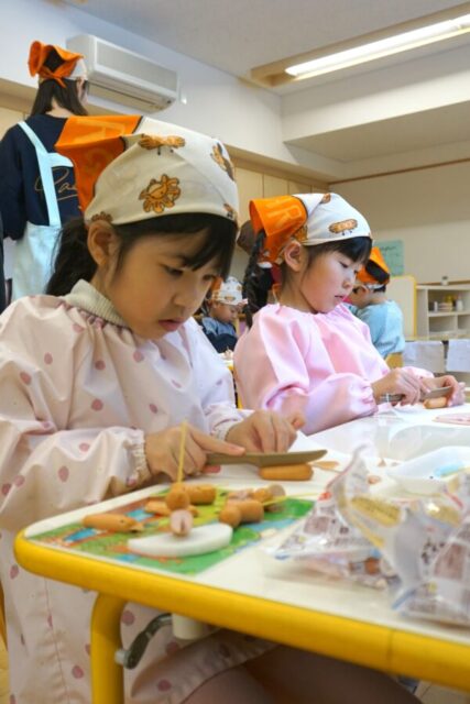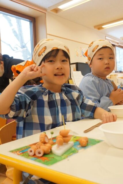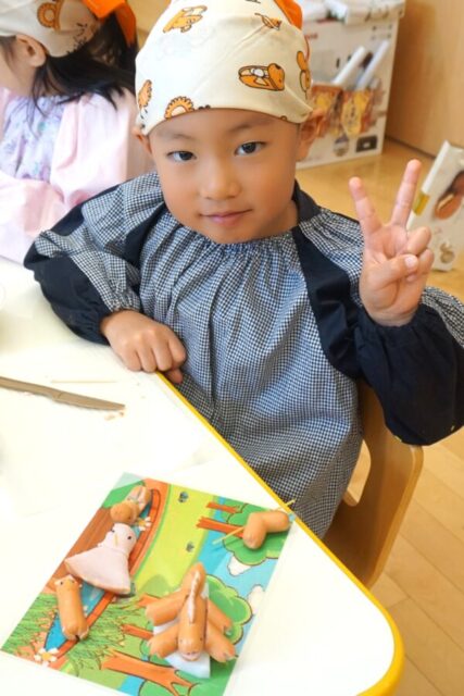 22日(月) 飾切り教室 ニッポンハムのご協力をいただいてあおさんがウインナーの飾切りに挑戦! 素敵な作品がたくさんできましたよ。お家でも親子で飾切りを楽しんでみてはいかがでしょうか。