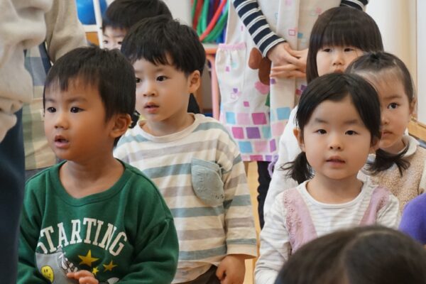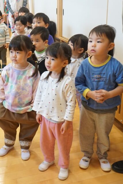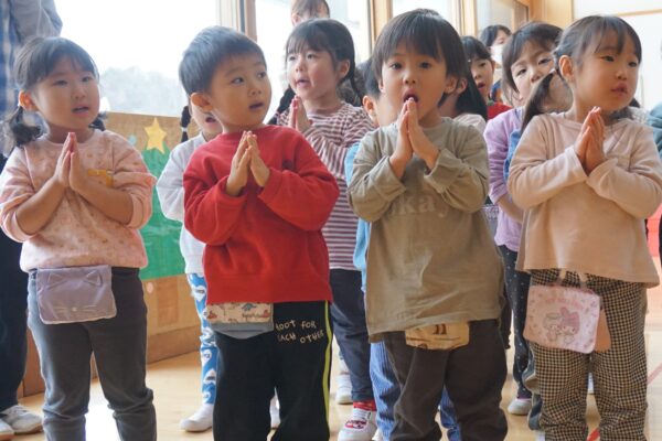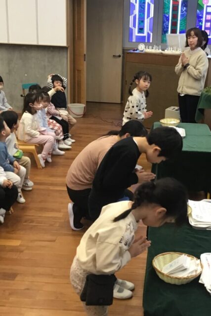 2月 豆まき 卒園感謝の祈り(年長) 誕生会(2,3月)