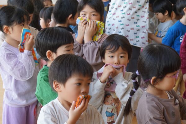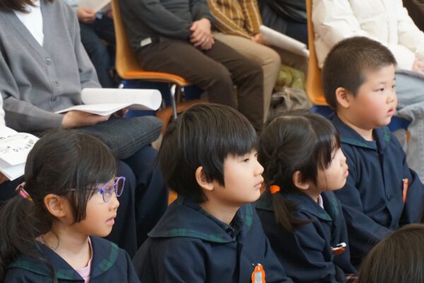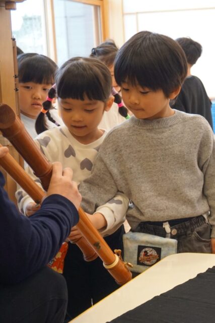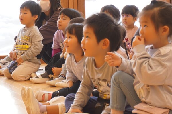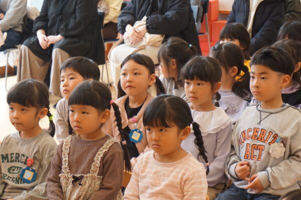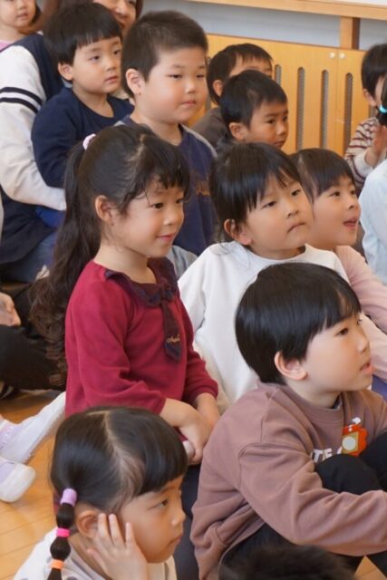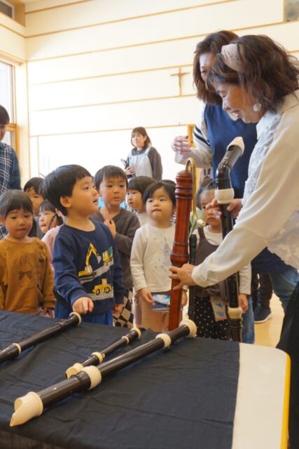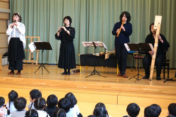 2月26日(木) 笛の演奏会 雅美先生とそのお友だちの笛演奏グループ「笛部」が素敵な演奏会を開いてくれました。子どもたちは笛の音色のあまりの美しさに、皆真剣なまなざしで聴き入っていましたよ♫