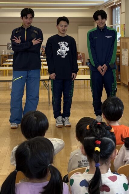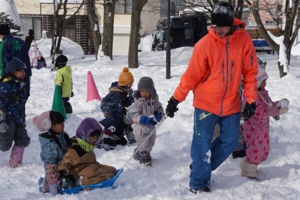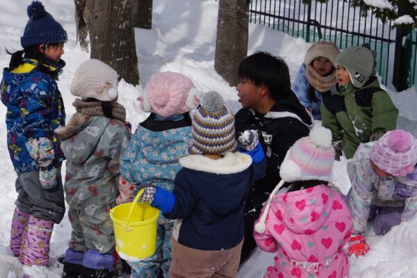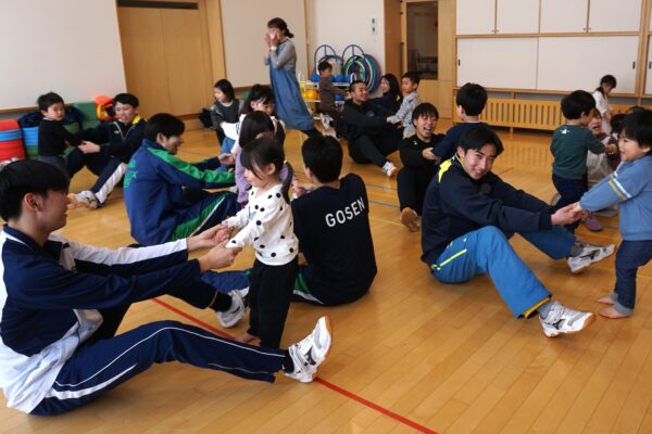 2月9日(月) 高校生来園 今日はとわの森三愛高校の高校生8人が来園しました。お兄さんお姉さんと遊んで子どもたちは大喜び! とっても楽しい時間を過ごしましたよ。高校生の皆さん、ありがとうございました。